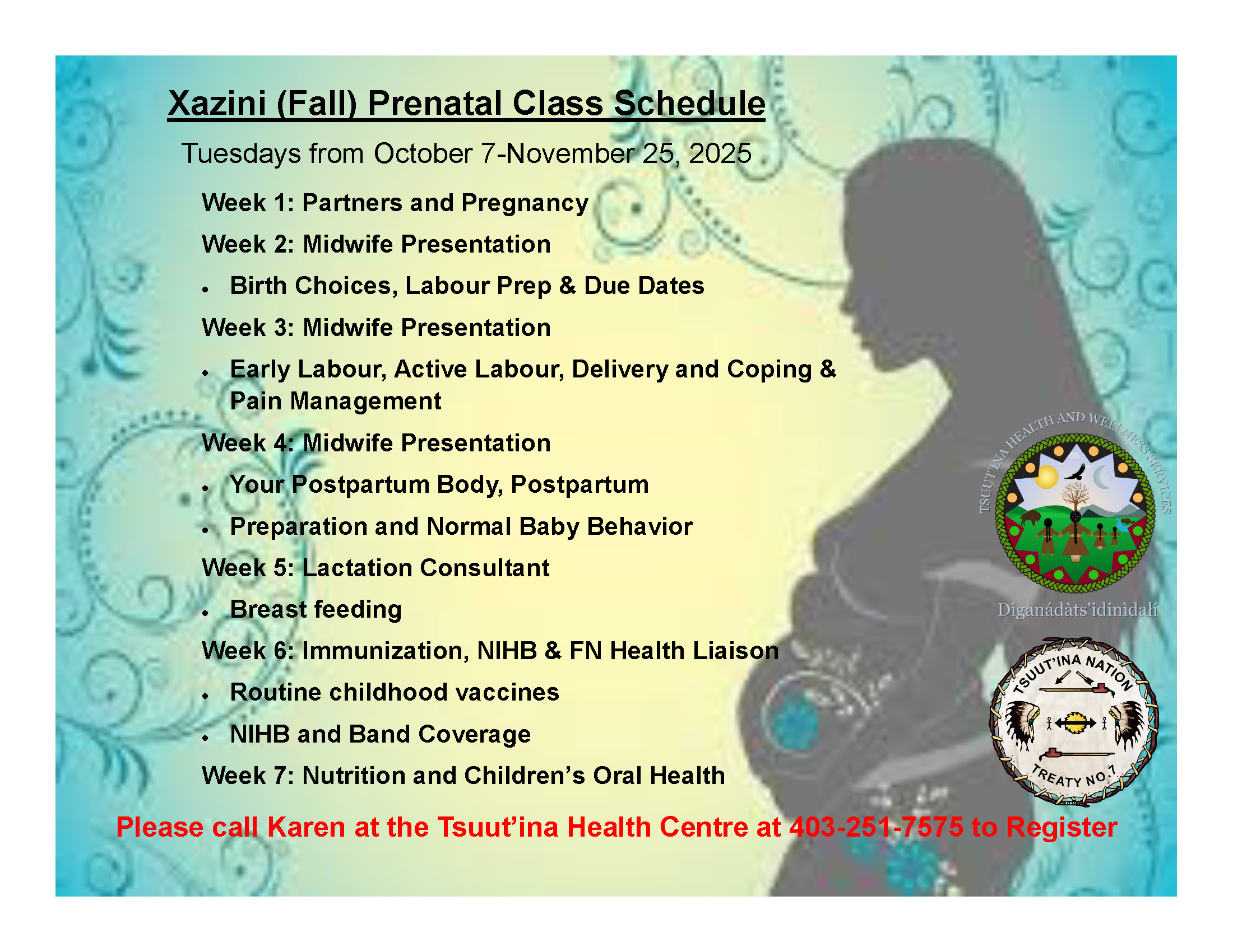 Gújá nágúdīgòy(Good morning), Please see the attached schedule for the Fall Prenatal Classes starting on Tuesday, October 7th – November 25...
