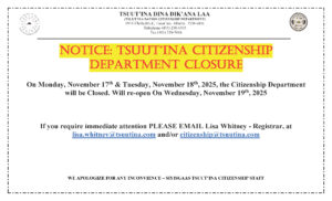 If you require immediate attention, please email lisa.whitney@tsuutina.com and/or citizenship@tsuutina.com