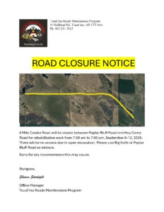 Road Closure Notice-6 Mile Coulee Road Closure Sept. 8-12, 2025