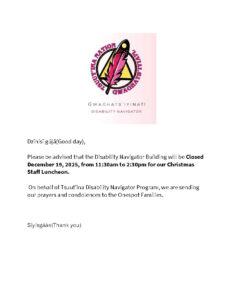 Please see the attached notice from the Disability Navigator Program regarding office closure today, December 19th, 2025, from 11:30 AM – 2:30 PM.