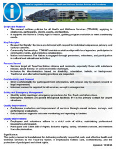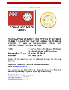 Please see the attached CIF Notice, Info Sheet and Motion for the Health and Wellness Services Policies and Procedures. Citizens and Nation Residents can access the Policies by reaching out to LPTS through email Lpts@tsuutina.com or by going directly to the Health Centre for copies.