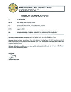 Please be advised that the Nation Administration Office will be closed on Tuesday, August 12th, 2025. Sending our sincerest condolences to the Starlight families during this time of loss.