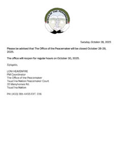 Please be advised that the Office of the Peacemaker will be closed October 28-29, 2025, and will reopen October 30, 2025.
