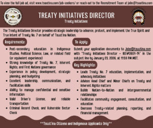 Please see the attached Position Poster Summary for the Treaty Initiatives Director.