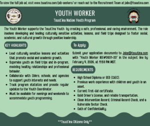 Please see the attached position summary posters on behalf of Tsuut’ina Human Resources.