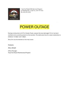 Power Outage – September 10, 2025 – 6 Mile Coulee Road
