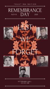 Please see the attached poster for Remembrance Day 2025, taking place on November 11th from 10 AM at the Chief Joseph Big Plume Administration Building – Veterans Hall.