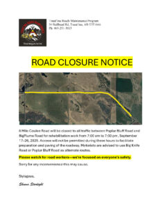 Road Closure Notice-6 Mile Coulee Road Rehabilitation Project-September 17-26, 2025