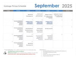 Please see attached for the September Garbage Pickup Schedule from Public Works.