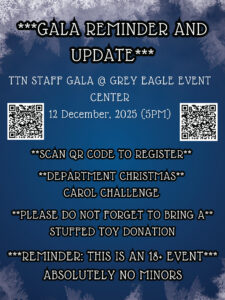 Please see the attached poster for the Staff Christmas Gala 2025 happening on Friday,December 12th, 2025, from 6 PM – 12 AM at the Grey Eagle Resort & Casino – Event Centre.