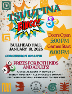 Please see the attached Poster and Message regarding Tsuut’ina Bingo happening Saturday, January 10th, 2026 at Bullhead Hall.