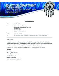 Tsuut’ina Education Early Dismissal Notice – December 17, 2025