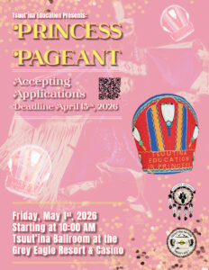 Please see the attached poster for the 2026 Tsuut’ina Education PrincessPageant happening onMay 1st, 2026,at the Grey Eagle Resort & Casino – Tsuut’ina Ballroom.