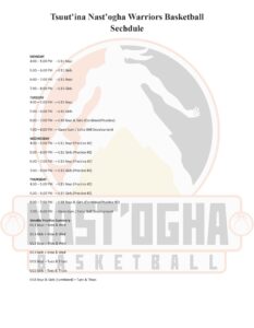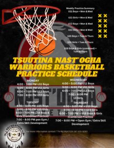 Please see the attached practice schedule for the Tsuutina Nast’ogha Warriors Basketball. Practices start March 2nd, 2026.