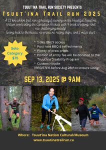 Please see the attached poster for the Tsuut’ina Trail Run 2025 happening on September 13th, 2025, at 9 AM in the Tsuut’ina Cultural Museum.