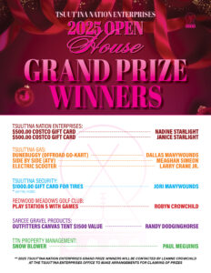 Please see the attached list for the Tsuut’ina Nation Enterprise 2025 Open House Grand Prize Winners.
