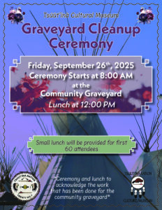 Please see the attached information for the Graveyard Cleanup Ceremony on Friday, September 26th, 2025.