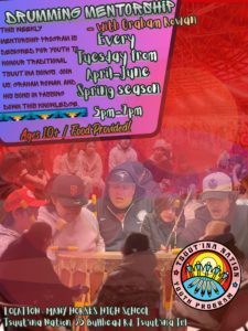 Please be advised that the Spring Season (April – June) of the Youth Program’s Drumming Mentorship with Graham Rowan is starting TONIGHT, April 7th, 2026, and is happening every Tuesday from 5 PM – 7 PM, at Manyhorses High School.
