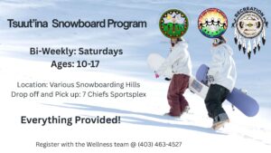 Tsuut’ina Health & Wellness Services is excited to launch our Youth Snowboard Program for the upcoming winter season.